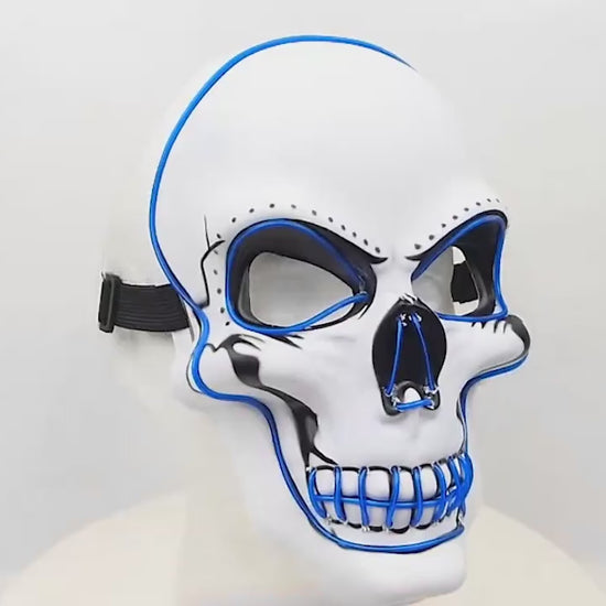 Masque squelette LED effrayant avec effet lumineux. 10 couleurs et 4 modes pour Halloween, festivals, clubs et soirées déguisées. Effet Garantie en Soirée ! Apportez une touche unique et futuriste à vos fêtes avec ce masque LED tendance !